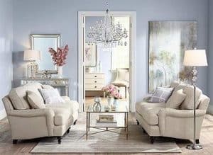 7. Serenity is a lighter, cooler version of the eggshell blue that dominated Victorian parlor rooms once upon a time. Bring back the elegance of blue decor with a symmetrical seating area and light Serenity walls. Pay attention to the shapes that dominate the space, balancing curves with corners.