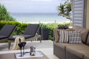 There’s little that’s less inviting than dusty, stained, faded, scratched, or damp furniture. If your surfaces are porous enough, they’ll soak up water or spills, resulting in permanent stains and gradual mold growth. If they’re sensitive to UV light and difficult to wipe down, they’ll age quickly and get your guests dirty. Make sure you stick to durable, easy-to-clean fabrics and finishes. Choose chairs, benches, and other outdoor seating options with weather-sealed wood or weather-proof metal frames. Then upholster them ina heavy-duty outdoor fabric, such as Sunbrella.