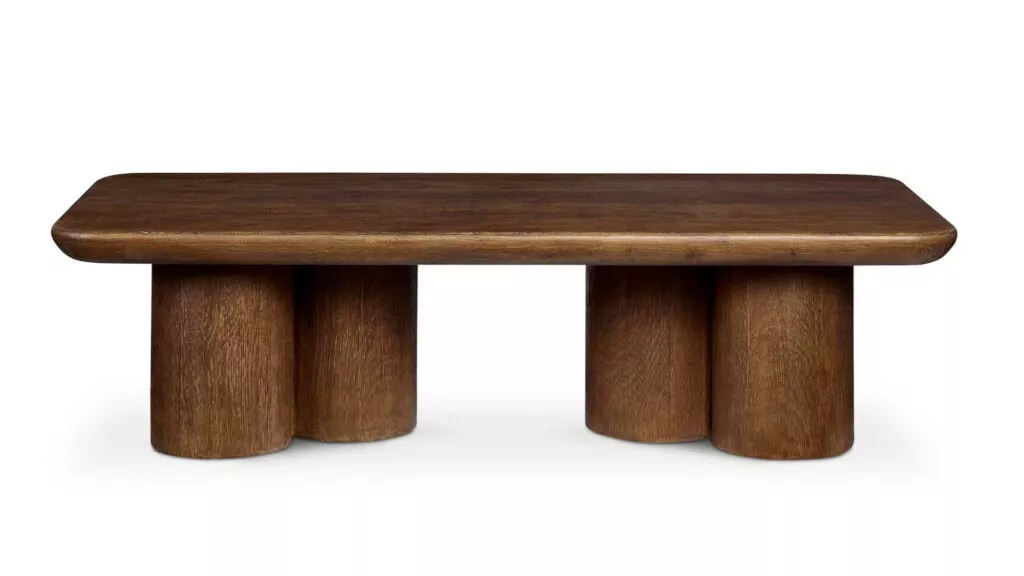 Bassett’s Ogden Coffee Table brings organic elegance to any room with its hand-sculpted curves and stone composite finish. Its heavily distressed top and column-like base offer a striking balance.