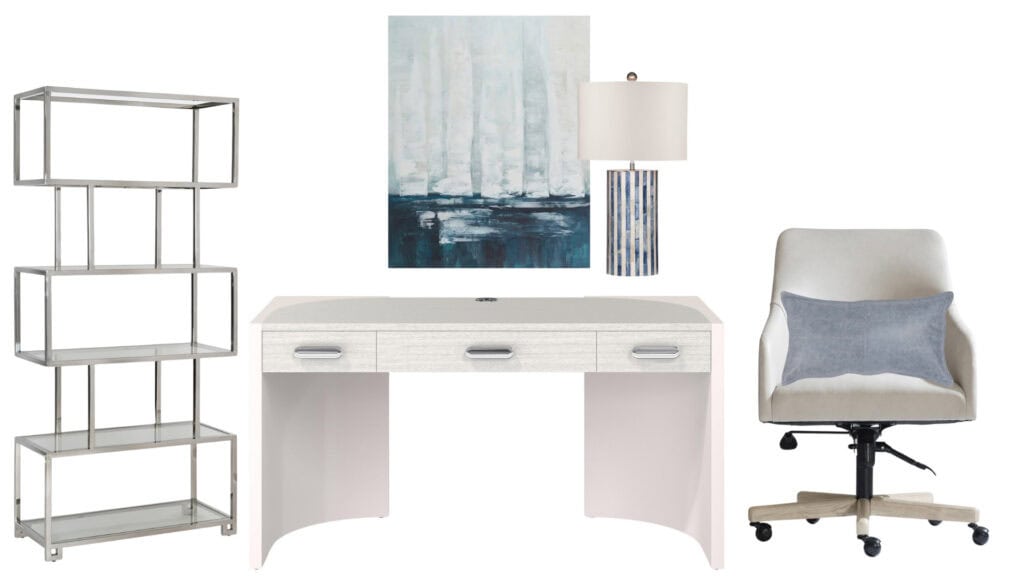 The Kaley Etagere proves that shelving can be both functional and fashionable. Its polished stainless-steel frame and glass shelves create an open, airy display for books, décor, or work essentials. Whether placed in a corner or against a wall, this etagere brings a modern vibe to your office.