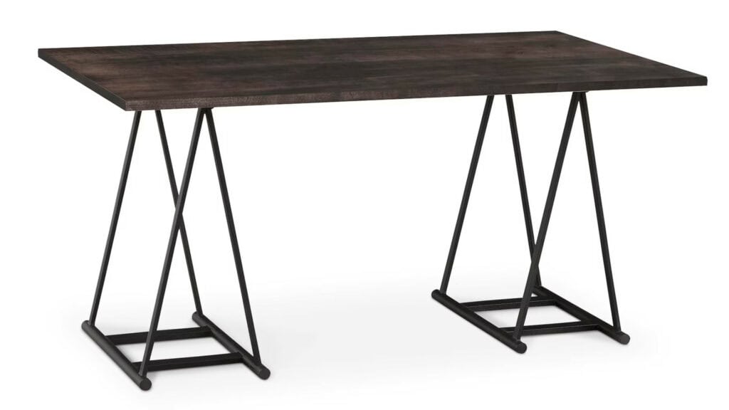 The Prospect Writing Desk combines industrial style with handcrafted quality. This desk has a solid wood top and cast iron base, adding sophistication to any home office. Customize the wood finish to match your workspace.