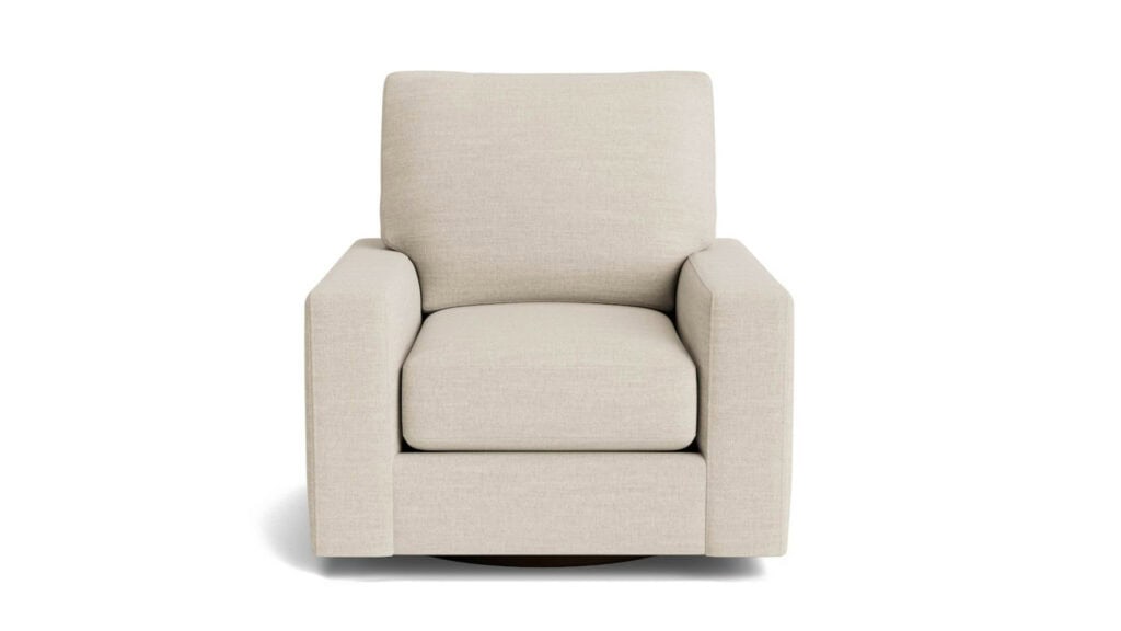The True Custom™ Swivel Chair provides both comfort and flexibility. Its wide arms and hidden swivel base make it perfect for open-concept spaces or smaller rooms. Customize the chair with your choice of fabrics and cushion details to make it uniquely yours.