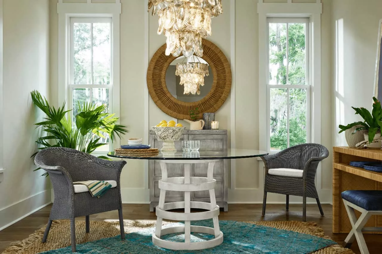 While we may not all be able to live at the beach, we can feel like we do with the American Coastal style. Characterized by words like โopen,โ โairy,โ โcomfortable,โ and โcarefree,โ American Coastal is the ultimate in unassuming. Two of the most important aspects of this remarkably transportive decorating style are abundant light and open space, both of which evoke feelings of calm and tranquility. Other American Coastal elements include the use of pale neutrals like whites, ivories, grays and blues; crisp, clean fabrics like linen, cotton, and muslin; natural materials like jute, seagrass, and straw; and light, weathered woods.