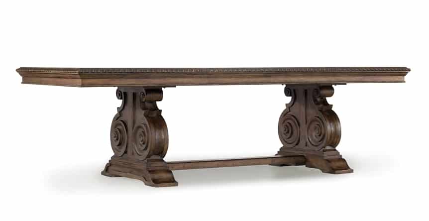 It might be unusual to think about furnishings as art, but they can be. And a statement dining table often is. Consider the trend of upscale casual family tables. Usually substantial, like our Paula Deen Family Style Table by Universal with its softly worn finish, they give any dining room instant history. This table could have been the setting for generations of family meals, and it might yet be.