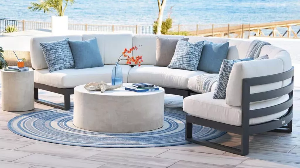 Complete the look with a mix of outdoor pillows, a weather-resistant rug, and accent tables for added convenience.