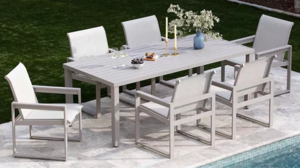 For a more contemporary feel, the Del Mar collection from Bernhardt blends modern lines with all-weather materials. The clean design and neutral tones make it easy to pair with your existing decor.