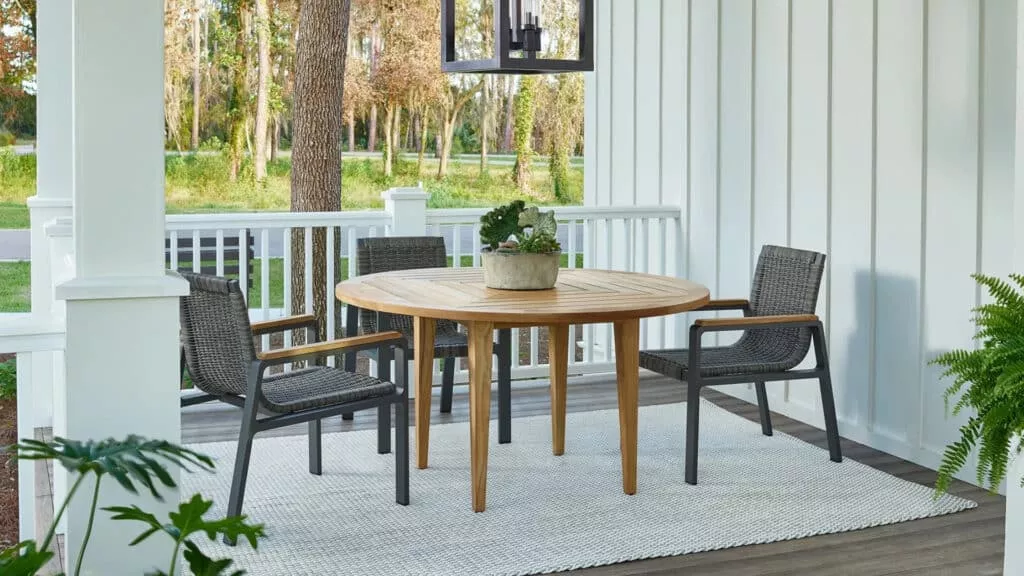 This timeless dining set offers a casual yet refined look for outdoor meals. Its round shape encourages easy conversation, while the durable construction ensures it lasts season after season.