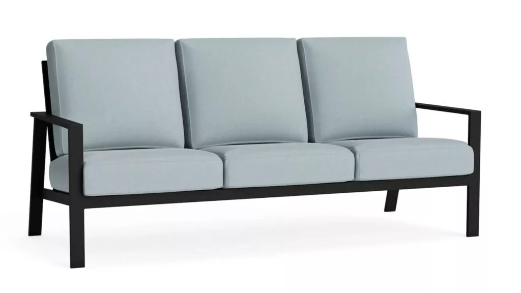 The Morris Outdoor Sofa combines clean lines with comfort. Its modest size and thick cushions make it an excellent centerpiece for your patio or porch. Crafted from commercial-grade aluminum and powder-coated for durability, this sofa comes in various finishes and outdoor fabrics to match your style.