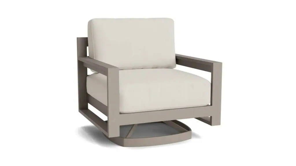 Relax in style with the Bonavista Outdoor Track Arm Swivel Rocker. This chair offers a cozy, rocking experience with its stable base and commercial-quality aluminum frame. Choose from six frame finishes and outdoor fabrics, and pair it with the Bonavista Ottoman for added comfort.