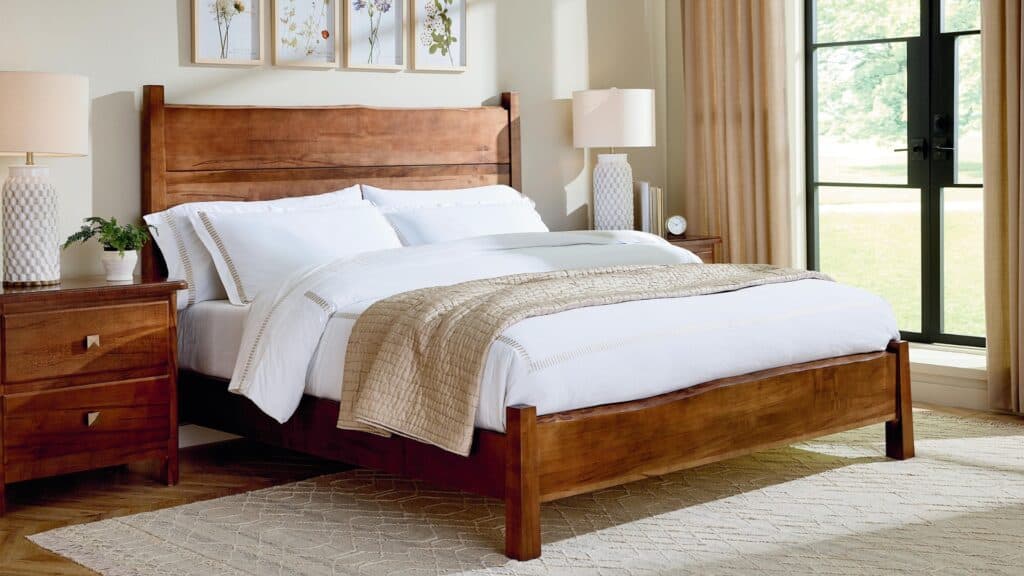 The Benchmade Heritage Live Edge Bed is handcrafted from selectively harvested solid maple and offered in a range of finishes and upholstery options to reflect your unique style and personality.
